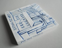 2022, Porzellan in unterschiedlichen Ausformungen, eine Version glasiert mit Unterglasurfarbe Blau, 11,8 × 11,8 cm, Privatbesitz