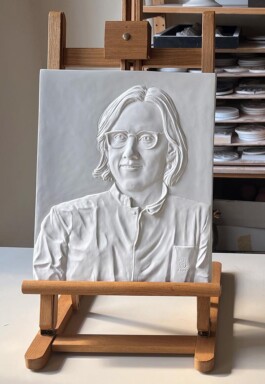 2024, Porzellan, teilweise glasiert, in Holz gefasst, 40 × 28 cm, Auftraggeber: Medizinische Fakultät der Hochschulmedizin Dresden